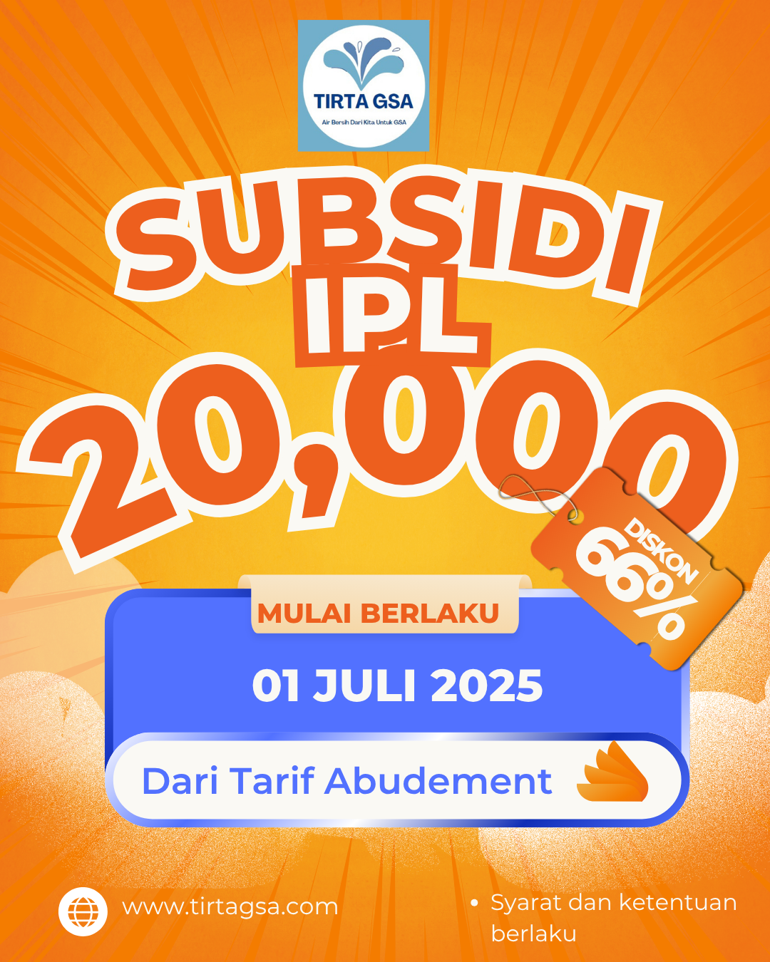 Tirta GSA hadir dari GSA untuk GSA, dengan adanya Program Subsidi IPL diharapkan seluruh pelanggan Tirta GSA bisa membatu meringankan pembayaran IPL. dengan membayar IPL tepat waktu, kita sudah membangun GSA ke arah yang lebih baik